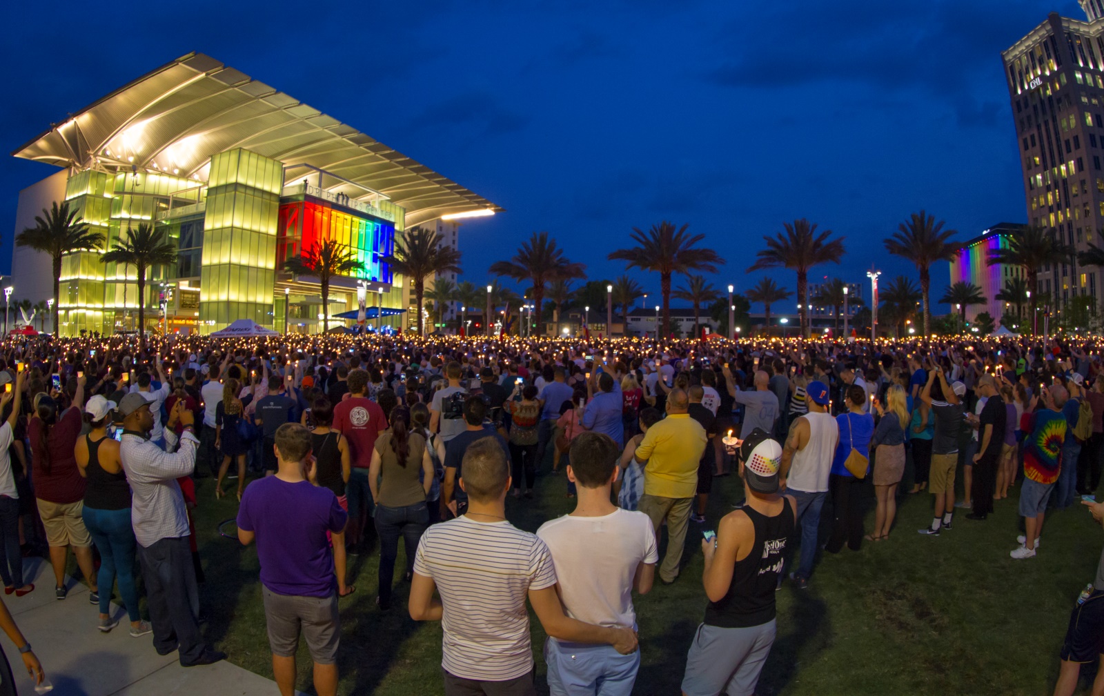 Thousands of people, lighted candles raised, attended a two-hour vigil in Orlando, the county seat of Orange County, Fla. on June 13, in memory of the 49 people killed and 53 injured in the mass shooting at the Pulse Nightclub.